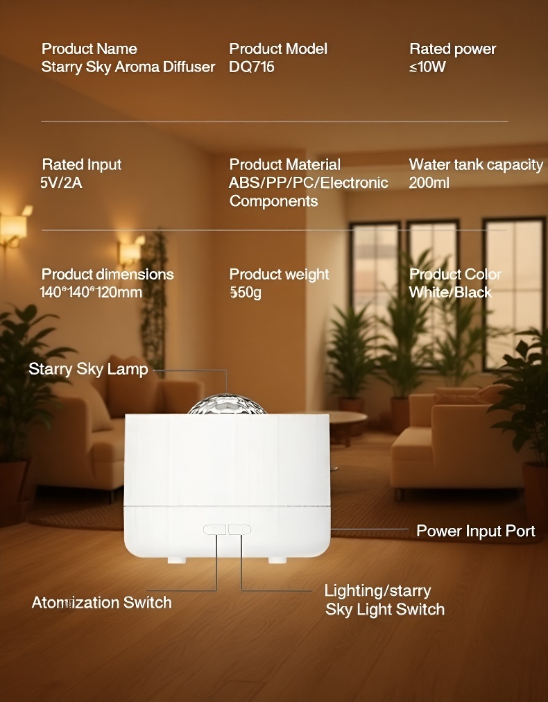 ● Features 360° rotating projection and adjustable mist output, allowing you to customize both ambiance and comfort to suit your mood.
